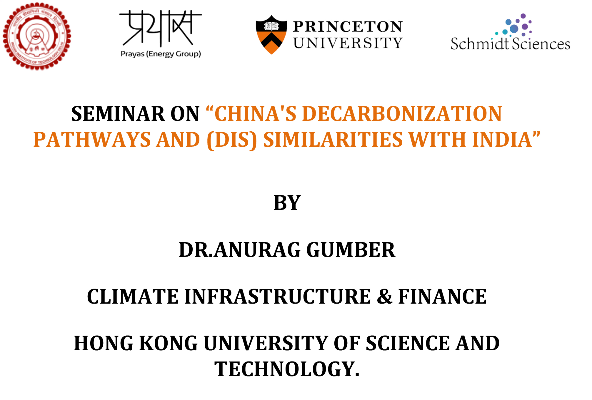 SEMINAR ON CHINA'S DECARBONIZATION PATHWAYS AND (DIS) SIMILARITIES WITH INDIA BY DR.ANURAG GUMBER CLIMATE INFRASTRUCTURE & FINANCE HONG KONG UNIVERSITY OF SCIENCE AND TECHNOLOGY.