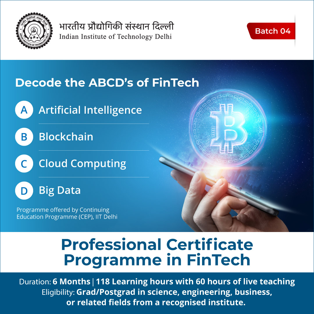 Online CEP programme in "Professional Certificate Programme in Fintech (Batch 4)"