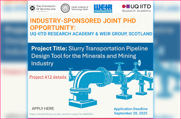 Opportunity to work on the UQ - IITD Research Academy and Weir IP Group Ltd., Scotland supported project