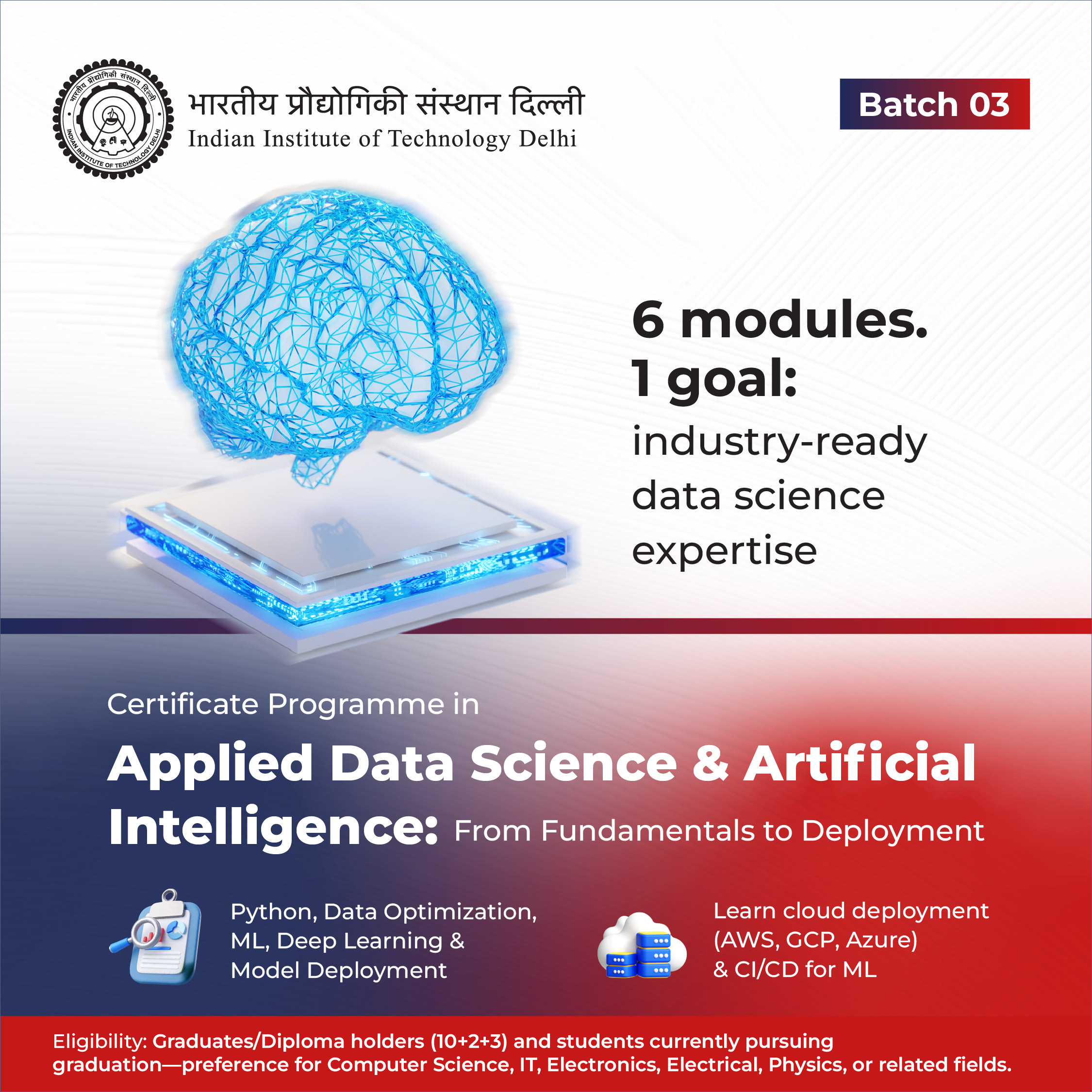Online CEP certificate programme in "Applied Data Science & Artificial Intelligence: From Fundamentals to Deployment - Batch 03"