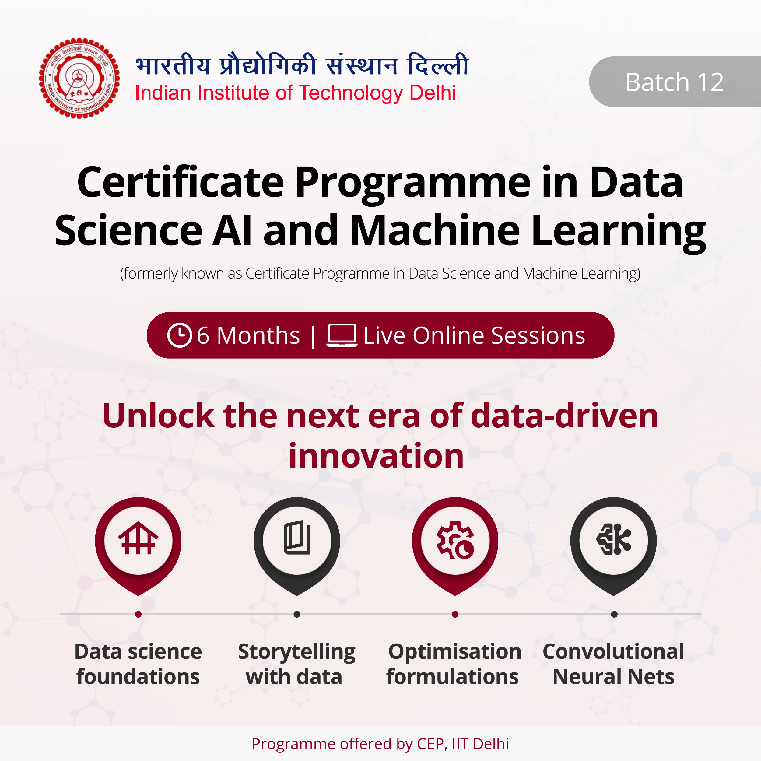Online CEP certificate programme in "Certificate Programme in Data Science, AI and Machine Learning- Batch 12"