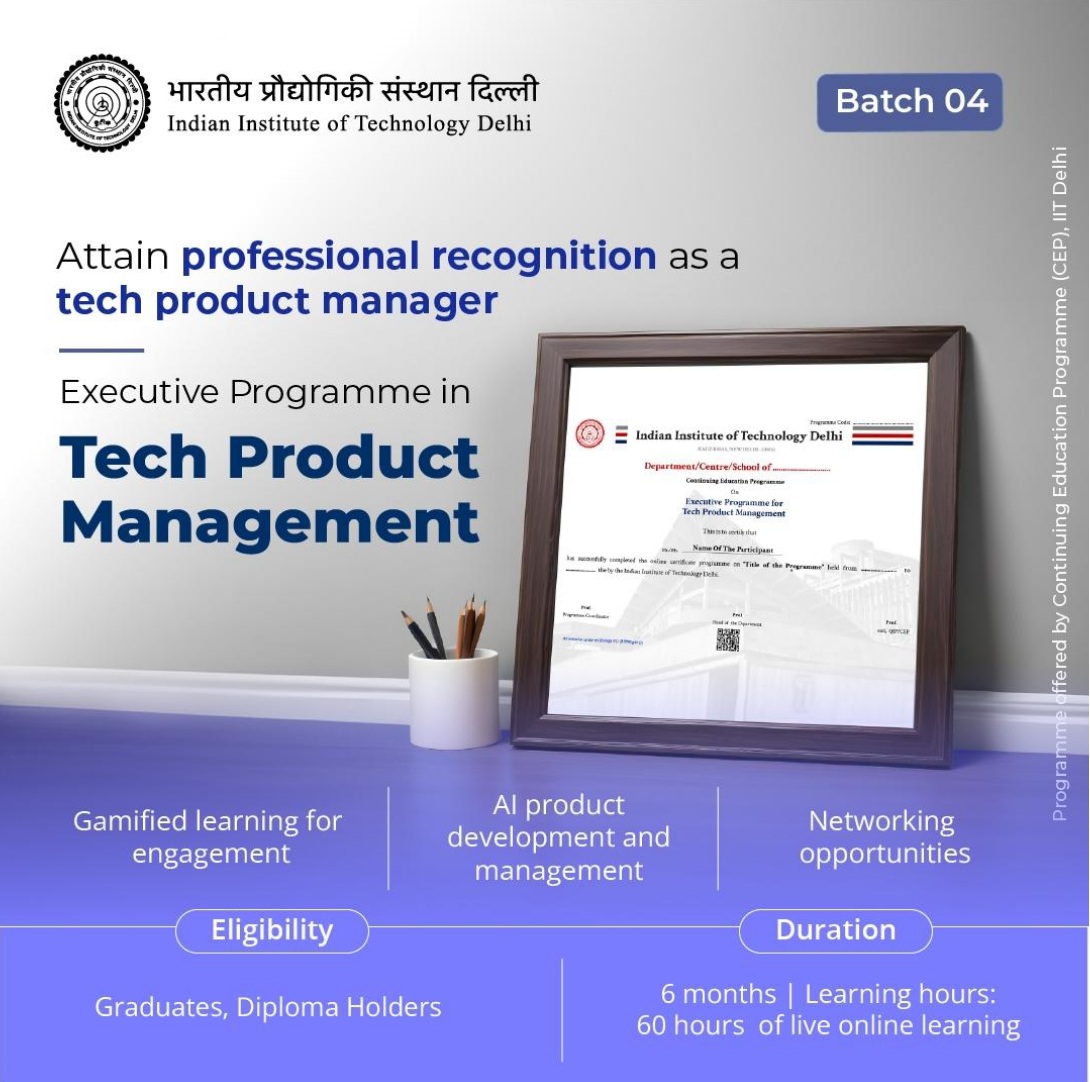 Online CEP certificate programme in "Executive Programme in Tech Product Management (Batch 04)"